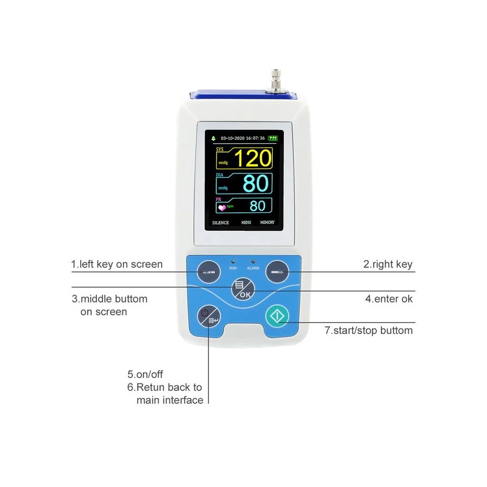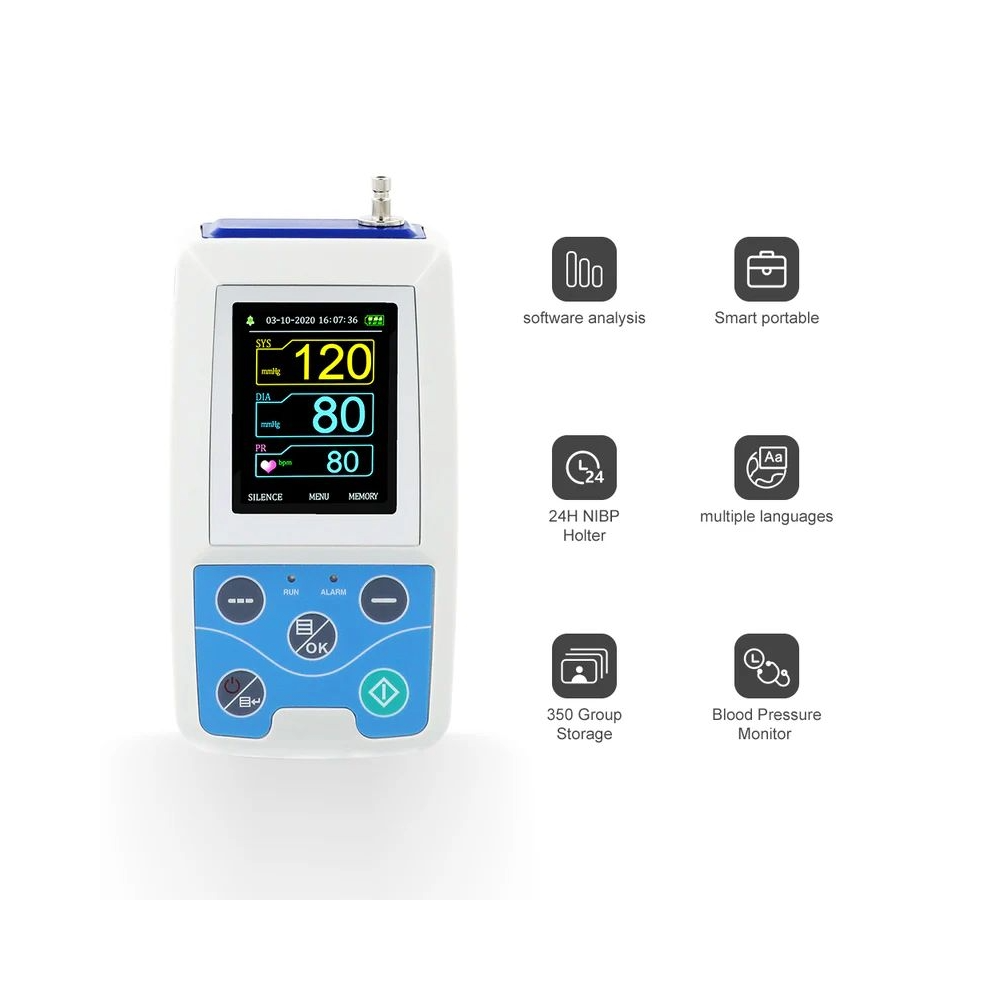 3) 24 hours ambulatory NIBP monitoring function, up to 350 groups of ambulatory NIBP data can be recorded for once.