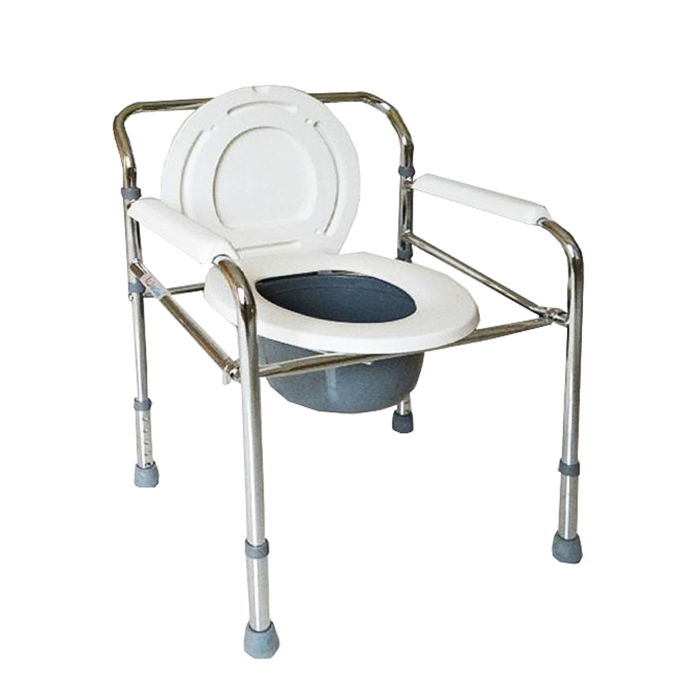 A commode chair is a type of chair used by someone who needs help going to the toilet due to illness, injury or disability. Stable and Supportive Commode Chair Our Commode Chair Without Wheels offers a stable and secure toileting solution for those who need extra support. Designed to provide comfort and safety, this chair is ideal for use in the bathroom or bedroom, ensuring ease of access and peace of mind for individuals with mobility challenges. Durable and Comfortable Design The chair features a sturdy, non-slip base that ensures it stays firmly in place during use. The seat is cushioned for added comfort, and the chair is designed to be easy to sit down on and stand up from, thanks to the supportive armrests. Made from high-quality, water-resistant materials, this chair is built to last and is easy to clean and maintain. Adjustable and Easy to Use The height of the Commode Chair Without Wheels can be adjusted to suit individual needs, providing a customized fit for maximum comfort and support. Its lightweight design makes it easy to move from room to room as needed, while the simple assembly process requires no tools, making it a convenient choice for home care. Hygienic and Easy Maintenance This commode chair is designed with hygiene in mind, featuring a removable bucket with a secure lid for easy disposal and cleaning. The smooth surfaces of the chair resist stains and odors, ensuring that it remains fresh and sanitary over time. The cushioned seat cover is also easy to clean, making maintenance simple and straightforward.