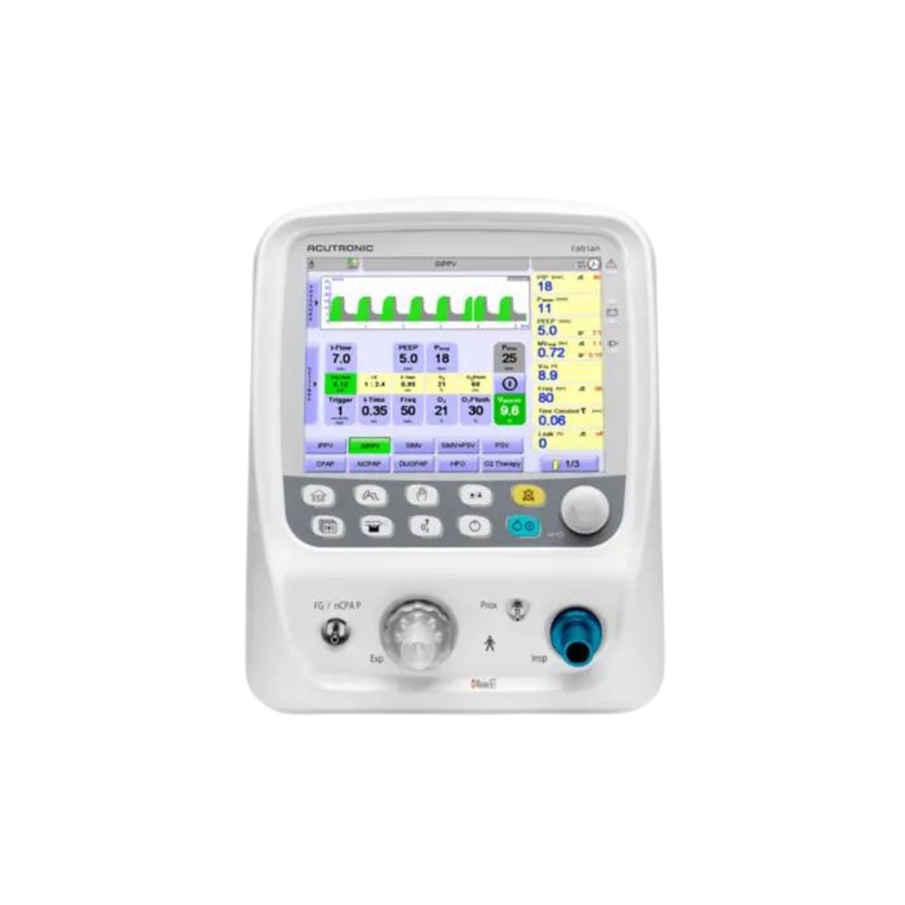 Fabian HFO Ventilator: Advanced Respiratory Support for Newborns The Fabian HFO Ventilator is a highly specialized medical device designed to provide High-Frequency Oscillation (HFO) ventilation, offering advanced respiratory support for neonates and infants with critical respiratory conditions. It combines the benefits of conventional and high-frequency ventilation in one system, making it ideal for premature infants, those with respiratory distress syndrome (RDS), and other complex breathing challenges. With precise control over lung recruitment and gentle ventilation, the Fabian HFO Ventilator is essential in neonatal intensive care units (NICUs). High-Frequency Oscillation Ventilation for Delicate Lungs The Fabian HFO Ventilator delivers rapid, small-volume breaths at high frequencies, which minimizes lung stress while ensuring adequate gas exchange. This is especially beneficial for preterm babies and those with underdeveloped or compromised lungs. The ventilator reduces the risk of lung injury and improves oxygenation by maintaining stable lung volumes, preventing lung collapse, and offering gentle, yet effective, ventilation. It is designed to support the most fragile patients with the least invasive approach, promoting better recovery and long-term lung health. User-Centric Design for Enhanced Care The Fabian HFO Ventilator is designed with both the patient and the healthcare provider in mind. It features a user-friendly interface with intuitive controls that allow for precise adjustments of ventilation settings, making it easy for medical staff to respond quickly to the needs of the infant. The ventilator’s compact, portable design ensures that it can be used in any NICU setting, including during transport. The quiet operation of the machine also minimizes environmental stress for both the baby and healthcare staff, creating a calm and focused care environment. Versatile and Reliable for Neonatal Intensive Care The Fabian HFO Ventilator is not only built for High-Frequency Oscillation but also offers modes for conventional ventilation, making it versatile and adaptable to various respiratory support needs. It seamlessly transitions between different ventilation modes, providing comprehensive respiratory care for neonates with varying degrees of lung impairment. This versatility, along with its robust build and reliability, ensures that it can handle the critical and evolving needs of infants in intensive care environments.