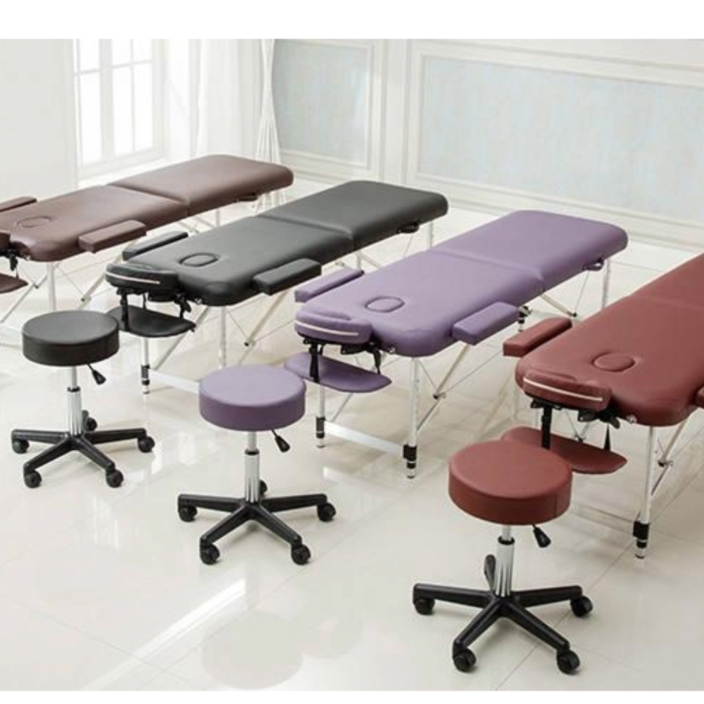 • Height-adjustable Headrest: The headrest of the beauty table, also face cradle, is removable if you do not need it. It is adjustable for different heights or angles, too. The headrest adopts a quick-fix locking device, through which the angle of the headrest can be adjusted. Foldable massage tables.