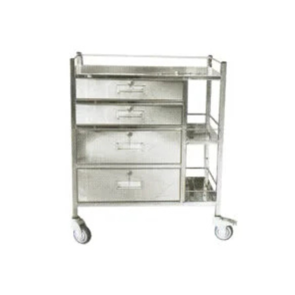 Medicine Trolley – Your Partner in Patient Care The Medicine Trolley is an indispensable piece of equipment in any healthcare setting, meticulously designed to facilitate the safe and efficient storage and transport of medications. Whether in hospitals, clinics, or long-term care facilities, this trolley enhances workflow, ensuring that medical professionals can provide timely and effective patient care. With its user-friendly design and robust construction, the Medicine Trolley is built to meet the demands of busy healthcare environments. Smart Organization for Quick Access With multiple drawers and compartments, the Medicine Trolley allows for systematic organization of various medications, supplies, and equipment. Color-coded bins or labeled drawers help healthcare professionals quickly identify and retrieve medications, reducing the risk of errors. This organized layout not only saves time during critical moments but also supports medication safety protocols, ensuring that the right patient receives the right medication at the right time. Durable and Hygienic Construction Constructed from high-quality materials such as stainless steel or durable plastic, the Medicine Trolley is built to withstand the rigorous demands of medical environments. Its smooth surfaces are easy to clean and disinfect, ensuring compliance with hygiene standards necessary for patient safety. The materials used are resistant to stains, rust, and corrosion, making the trolley a long-lasting and reliable choice for healthcare facilities. Effortless Mobility and Stability Equipped with robust wheels and a locking mechanism, the Medicine Trolley offers unparalleled mobility while ensuring stability during use. The trolley can be easily maneuvered around tight spaces, such as patient rooms and hallways, allowing healthcare professionals to transport medications and supplies with ease. When stationary, the locking wheels secure the trolley in place, providing a stable surface for administering medications, which is crucial during patient care.