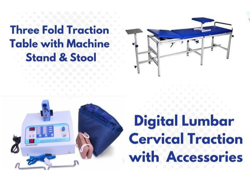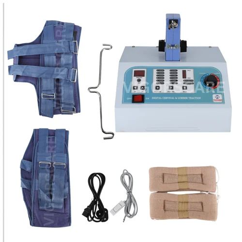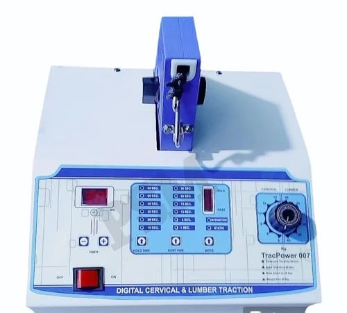 Traction Machines. Offered machines are extensively used by physiotherapists for providing traction for neck pain degenerative disc disease spondylitis facet syndrome etc. In order to manufacture these machines in line with set quality norms our professionals use the best quality components with the help of advanced technology. Further we these Physiotherapy Traction Machines with one set of fixation lumber belt.