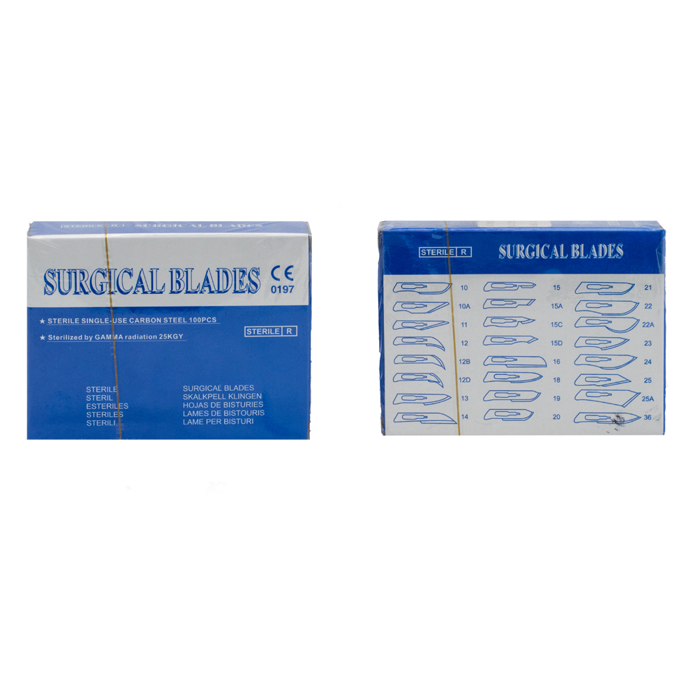 Details AVAILABLE:  11G[100PCS], 15G [100PCS] , 22G [100PCS] ,  23G[100PCS] & 24G[100PCS] Propper Non-Sterile Carbon Steel Surgical Blades are manufactured with razor-sharp cutting edges allowing for precision and clean incisions.